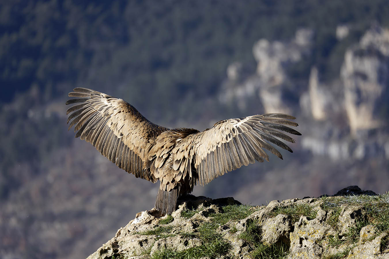 Vautour fauve lors de la descente sur la vire